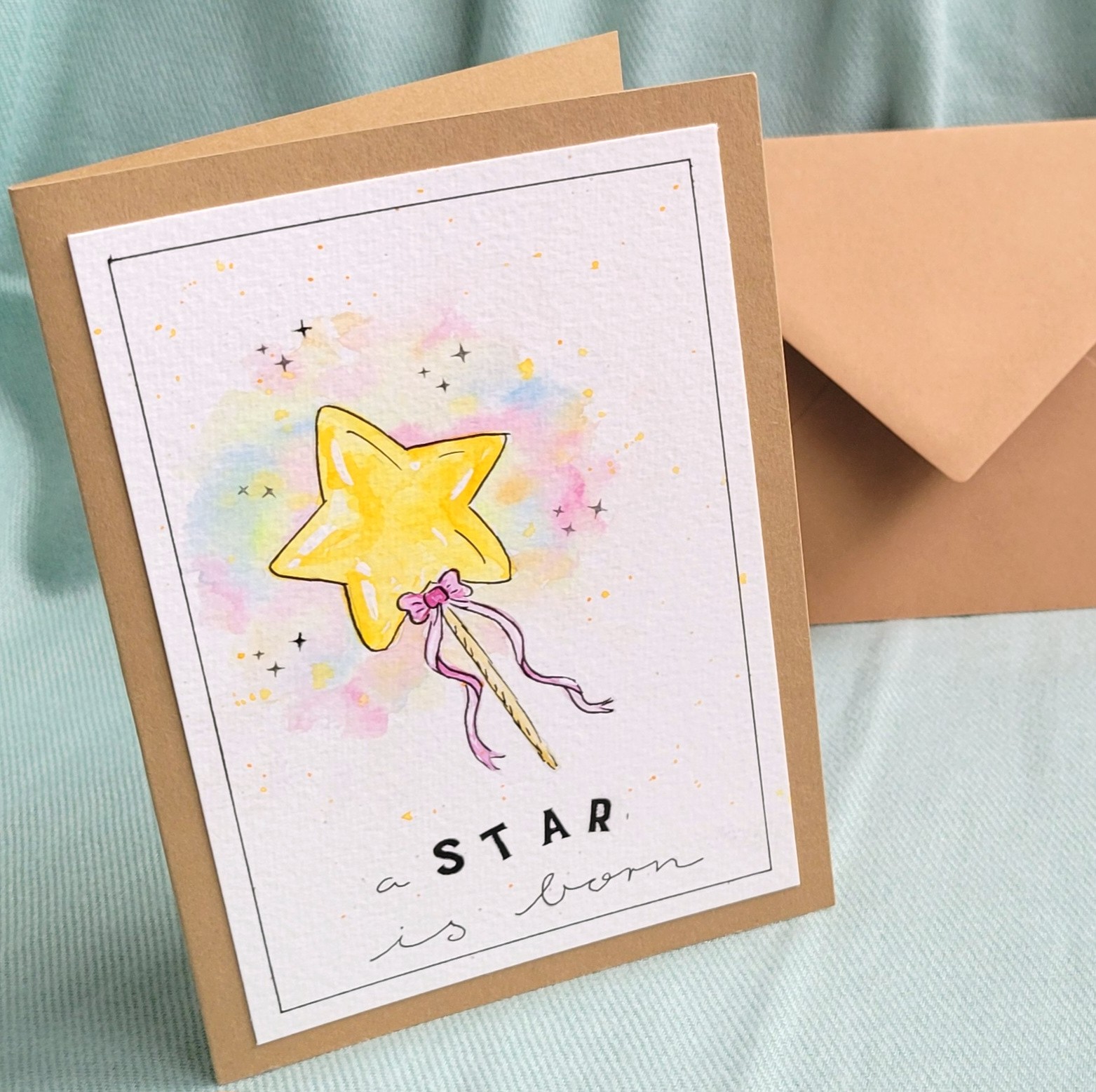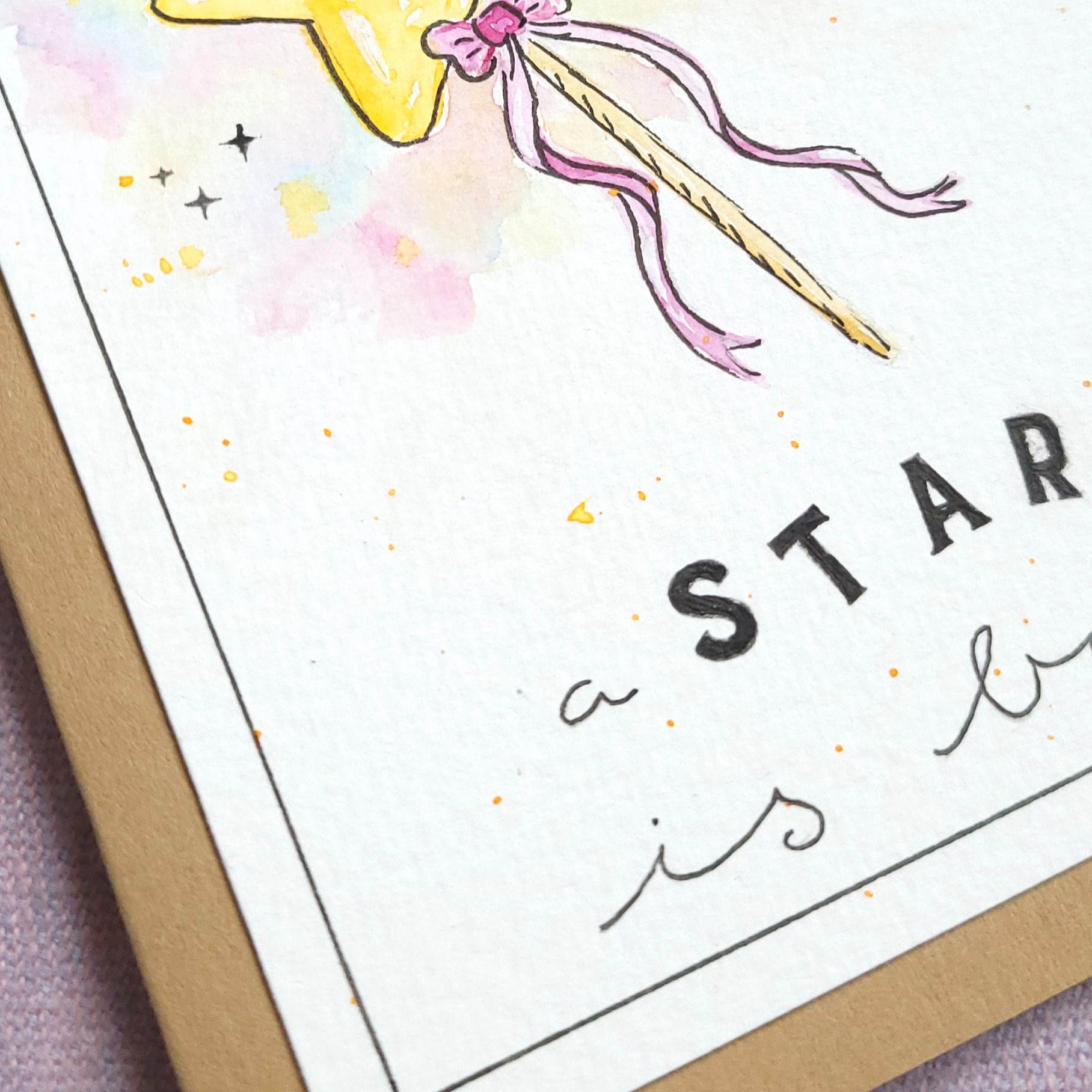Diese hochwertige, mit Aquarellfarben handgemalte Motivkarte ist ein echtes Einzelstück und genau das richtige Willkommensgeschenk zur Geburt.